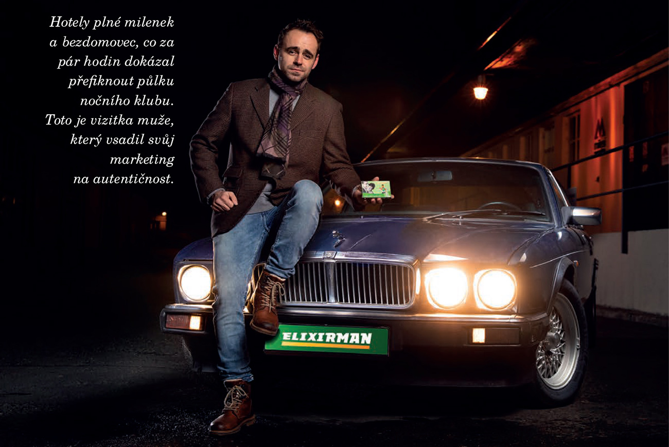 Michal (Elixirman): My jsme tam v onu dobu nebyli jako lidi od Červeného kříže nebo nějaká nadace, i tak jsme mu to i prezentovali. Navrhli jsme mu, že může na chvíli vypadnout z ulice a mít zážitky, na které pravděpodobně do konce života bude vzpomínat a které mu nikdo jiný nenabídne. Nejzajímavější na tom celém je, že peníze, co by jinak shrábla reklamní agentura za hezké letáčky do ordinací, jak to dělá většina farmaceutických firem, tak od nás tuto částku dostal bezdomovec v pořádném zážitkový balíčku. Tím jsme v tomto absurdně apatickém období, kde lidé kolem sebe už nevnímají, přinesli určité procitnutí, že produkty, které dokáží obstát v praktickém životě, jen ten nejupřímnější způsob reklamy, která pak dokáže měnit životy dalším lidem.